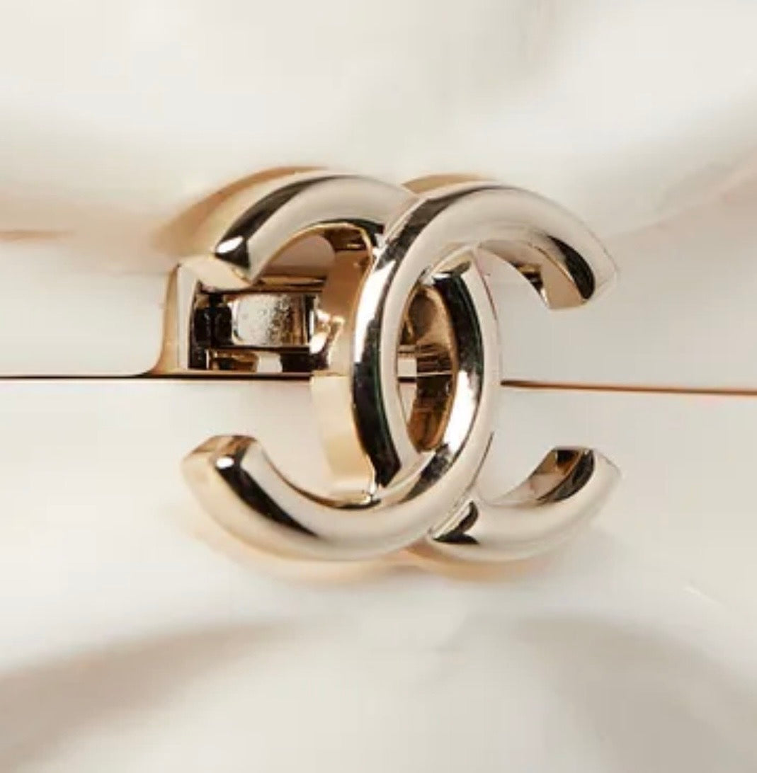 The Ephyra Bag, measuring 20 x 7.5 x 9.5 cm, features a distinctive shell shape and includes a durable chain strap alongside a shorter, detachable pearl strap. This design allows for versatile styling options while the structural integrity of the bag ensures long-lasting use.